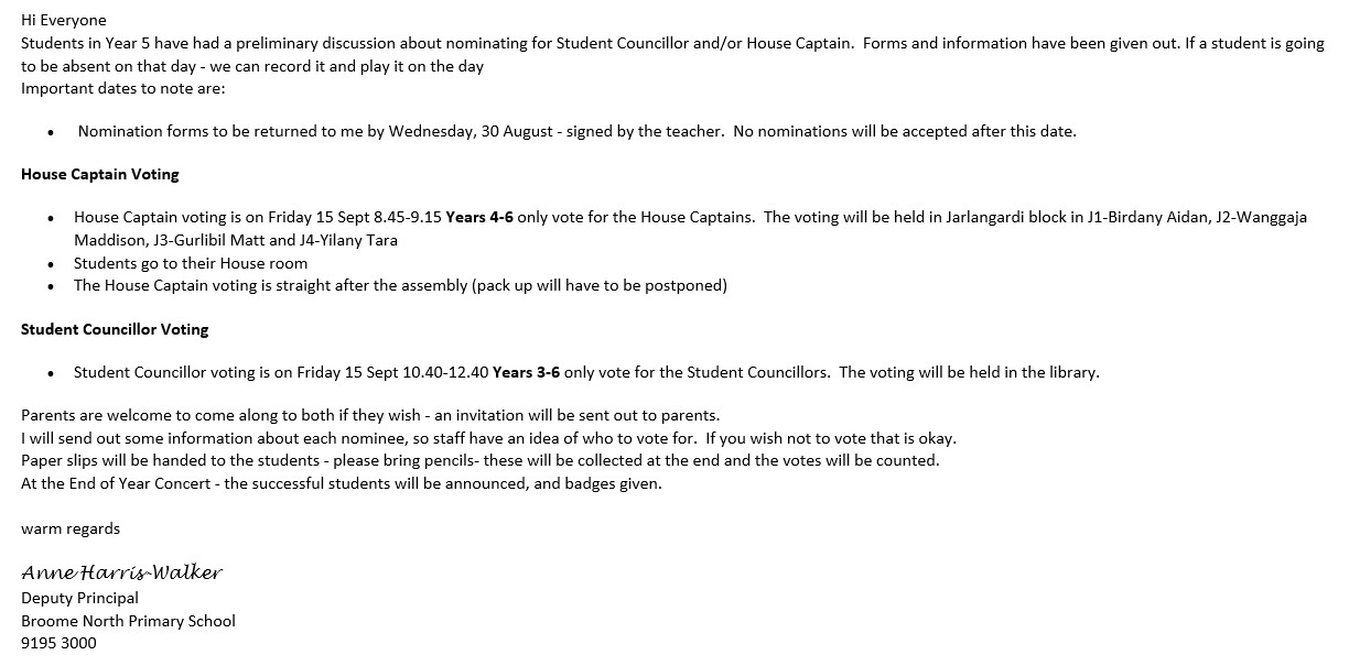 2024 House Captain and Student Councillor voting